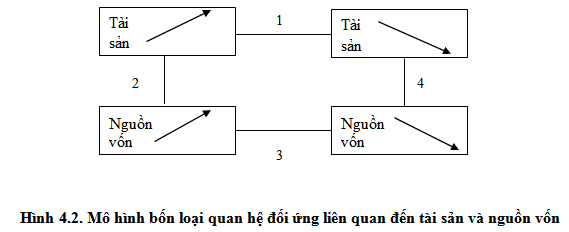 bản thân mỗi nghiệp vụ kinh tế phát sinh đã chứa đựng trong nó các mối quan hệ nhất định. Trên thực tế, mỗi nghiệp vụ hay còn gọi là mỗi giao dịch phát sinh sẽ làm ảnh hưởng đến ít nhất hai đối tượng của vốn kinh doanh thể hiện qua hai mặt của vốn là tài sản và nguồn vốn. Dựa trên phương trình kế toán cơ bản và hai chiều hướng ảnh hưởng tăng hoặc giảm tài sản hay nguồn vốn, chúng ta có thể khái quát bốn loại nghiệp vụ kinh tế – tài chính phát sinh trong đơn vị có liên quan đến tài sản và nguồn vốn sau đây.