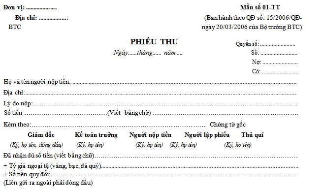 Dưới đây chúng tôi giới thiệu ba mẫu chứng từ thường gặp như Phiếu thu, Phiếu nhập kho, Hoá đơn GTGT.