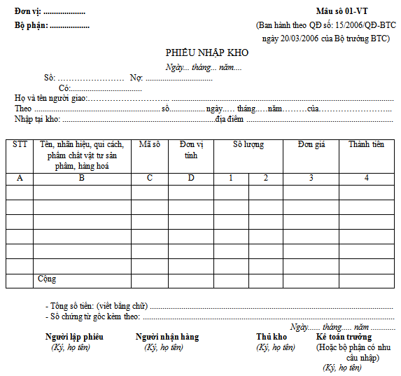 - Ngày, tháng, năm lập chứng từ.