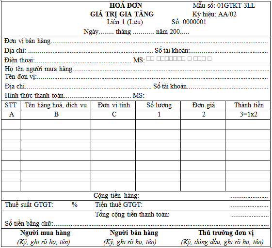 Thứ hai, về số liên của hoá đơn. Thông thường hoá đơn GTGT phát hành 3 liên, trong đó Liên 1 để lưu, Liên 2 để giao cho khách hàng và Liên 3 để luân chuyển nội bộ.
