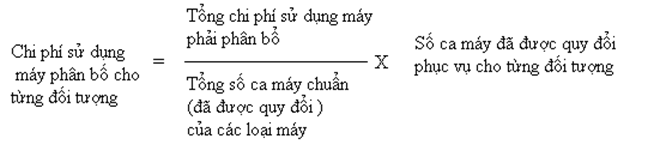 Tính phân bổ chi phí sử dụng máy cho từng đối tượng theo số ca máy tiêu chuẩn: