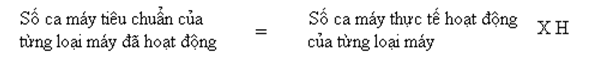 Sau đó căn cứ vào hệ số quy đổi và số ca máy đã thực hiện của từng loại máy để quy đổi thành số ca máy chuẩn.